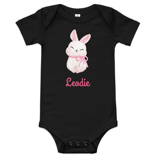 Customizable Bunny With Pink Ribbon Baby Onesie