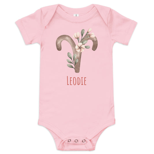 Customizable Aries Symbol With Flowers Baby Onesie