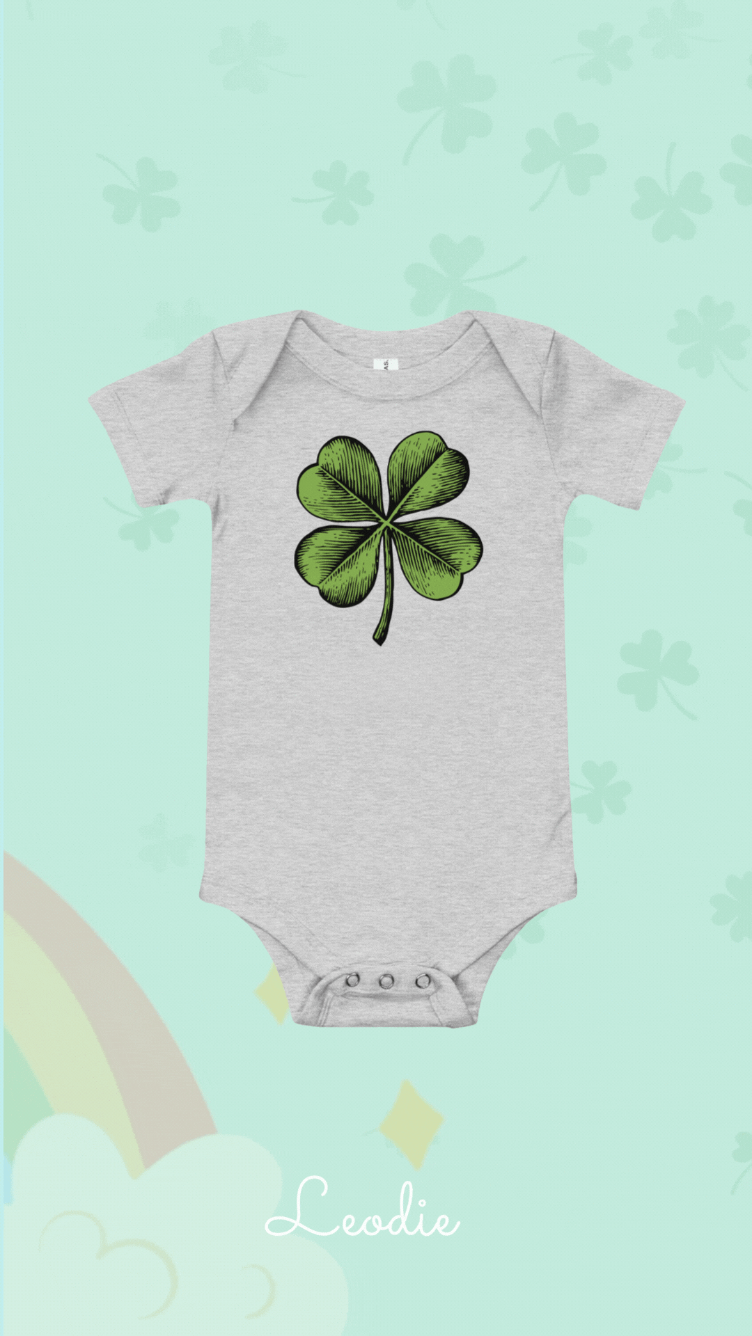 Customizable Woodblock Four Leaf Clover Baby Onesie