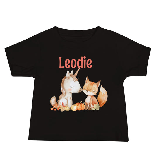 Customizable Unicorn and Fox Friends Autumn Baby Tee